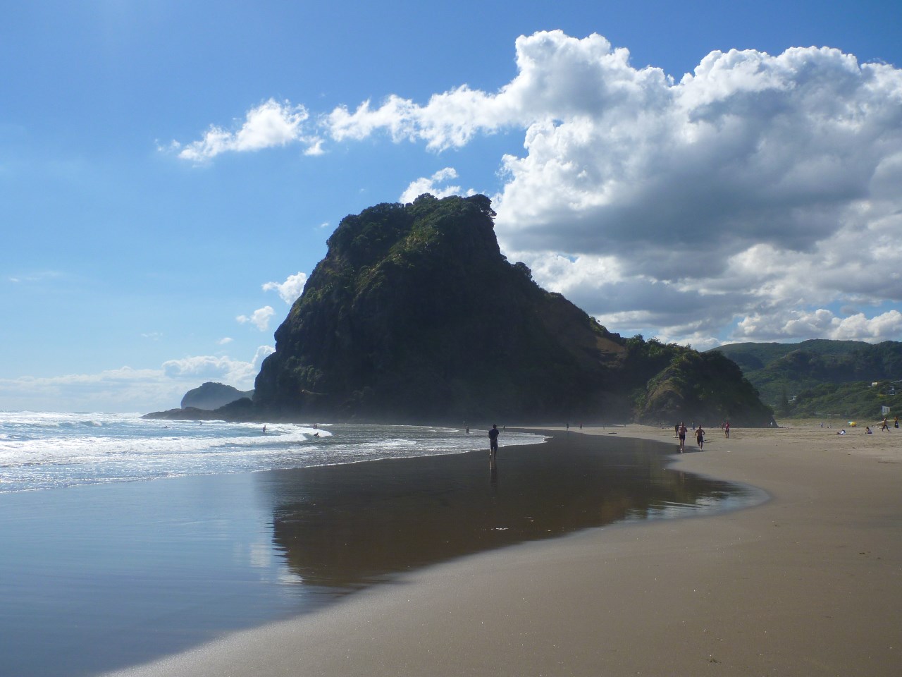 Nous avons passé notre dernière nuit à Piha, plage assez connue en Nouvelle-Zélande pour le surf (il y a même une émission hebdomadaire sur les sauvetages en mer de Piha Beach, les courants étant relativement dangereux). En photo, le Lion Rock, qui coupe la plage en deux. Vous verrez en gallery les photos prises depuis la plateforme d'observation située à mi-hauteur.