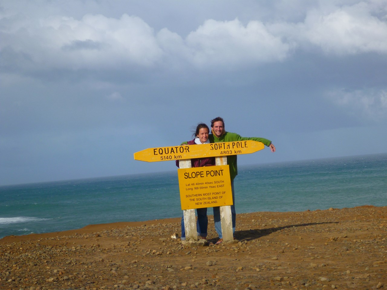 Après avoir été tout au Nord de la Nouvelle Zélande, nous voici exactement au point le plus au Sud de l'ile du Sud, à une distance finalement presque égale de l'équateur et du Pôle Sud (5000kms).