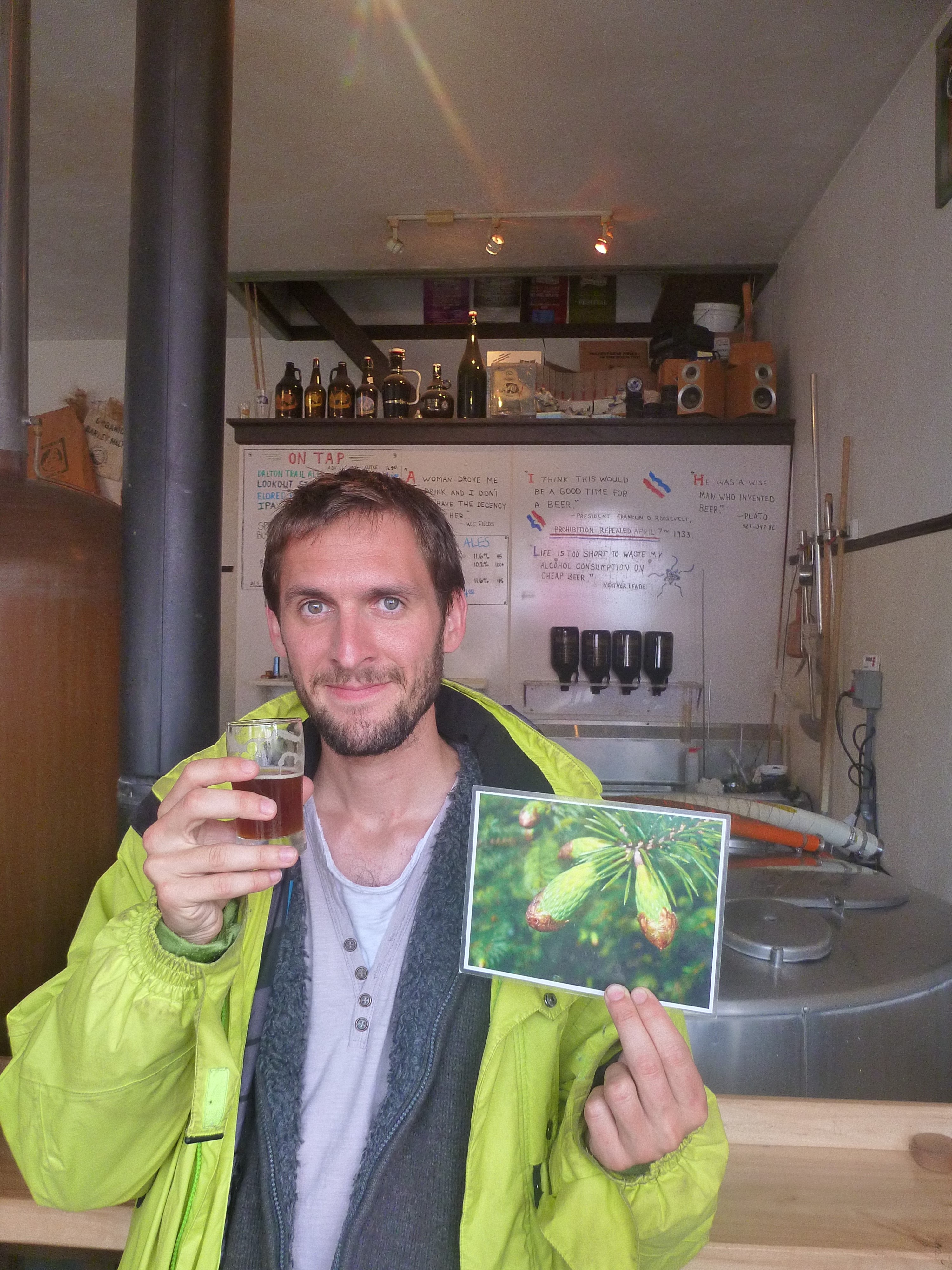 Après une heure de ferry dimanche, nous voila arrivés à Haines, pour deux nuits (1 journée complète). Le soleil n'était pas au rendez-vous, mais nous avons pu faire une petite marche dans la forêt jusqu'au bord de mer, puis se promener en ville (très petite, une rue principale), et enfin aller déguster une bière dans la brasserie artisanale qui se situe dans Dalton City, le set qui a servi au tournage de Croc-Blanc ! Et nous repassons au Canada !
